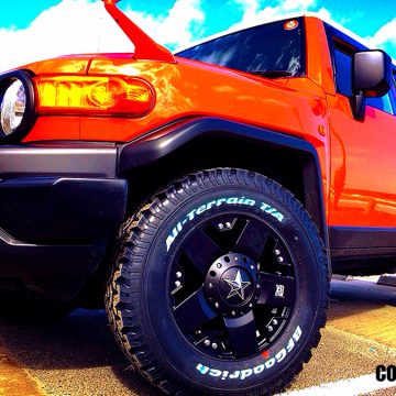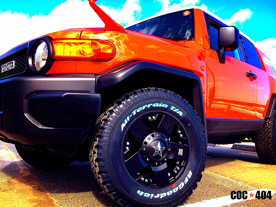 お車はトヨタ FJクルーザー。 ご購入いただきましたホイールとタイヤは下記のとおりです。 ・KMC XD Rockstar サイズ:17x8J ・BFGoodrich All-Terrain T/A KO サイズ:265/70R17